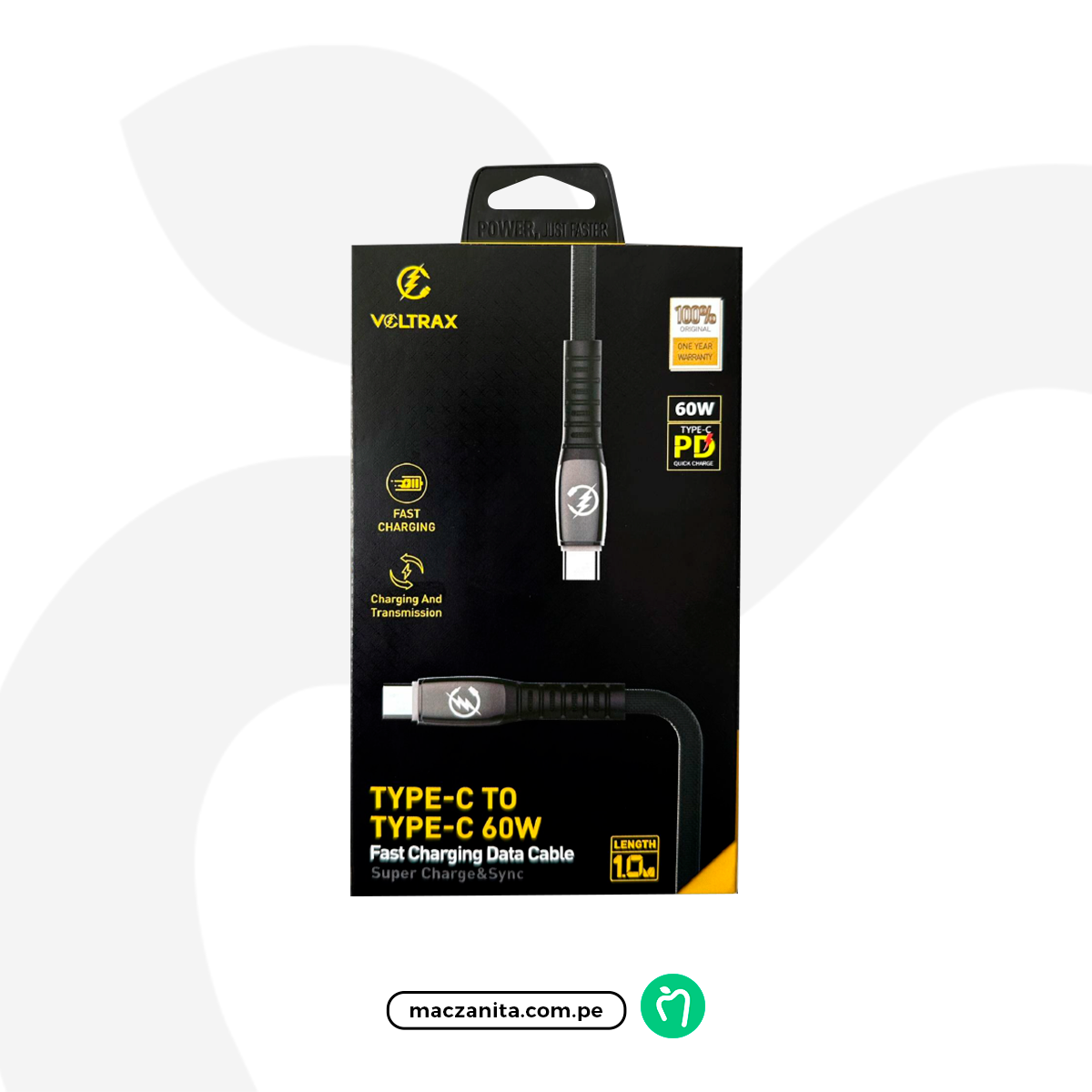 Cable | LED USB-C a USB-C 60W Voltrax Nuevo en Perú – Conexión Segura y Garantía Maczanita