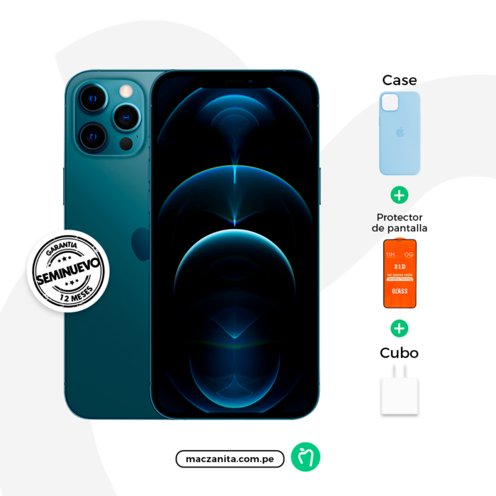 El iPhone 12 Pro Max Azul pacífico Seminuevo destaca por ofrecer la mejor autonomía de toda la serie iPhone 12, permitiendo disfrutar de más horas de video, streaming y navegación diaria. Al tratarse de un iPhone original seminuevo certificado por Maczanita Perú, se garantiza que la salud de la batería cumple con altos estándares de calidad. Más importante aún, tu compra en Maczanita Perú incluye la garantía oficial de Apple, dándote total tranquilidad. Disfruta de la experiencia fluida y segura de iOS, con acceso a las últimas actualizaciones y millones de apps. Sigue nuestras redes en Facebook, Instagram y TikTok para ver unboxings y más.