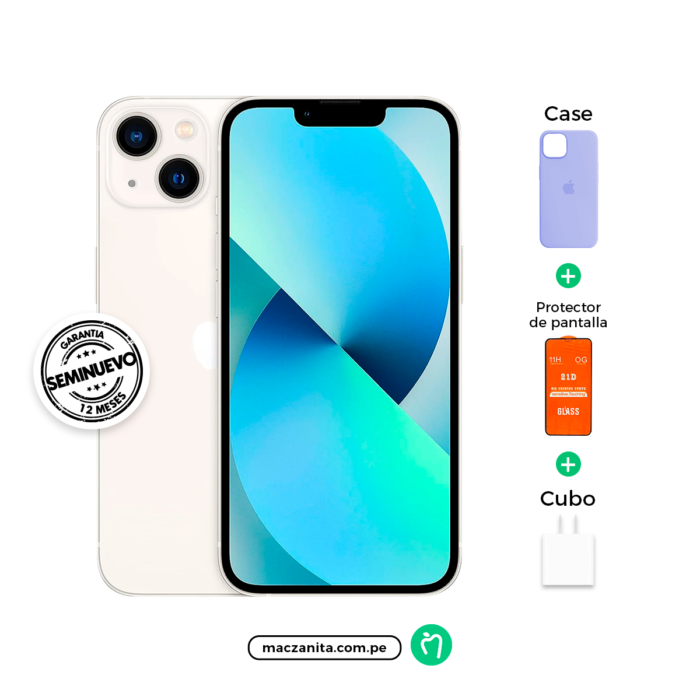 Comprar un iPhone 13 Blanco Seminuevo significa disfrutar de un equipo sellado de fábrica, con batería al 100% de su capacidad y una autonomía mejorada que te acompaña durante todo el día. Más importante aún, tu compra en Maczanita Perú incluye la garantía oficial de Apple, dándote total tranquilidad. Disfruta de la experiencia fluida y segura de iOS, con acceso a las últimas actualizaciones y millones de apps. Sigue nuestras redes en Facebook, Instagram y TikTok para ver unboxings y más.