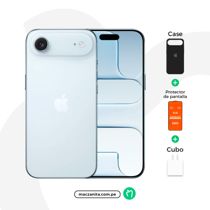 Gracias a la extraordinaria eficiencia del chip A19 Bionic, el iPhone 17 Air Azul cielo nuevo ofrece una autonomía confiable para acompañarte durante todo el día. Incorpora Wi-Fi 7 para conexiones ultrarrápidas y 5G avanzado para una experiencia de navegación fluida y estable. Más importante aún, tu compra en Maczanita Perú incluye la garantía oficial de Apple, dándote total tranquilidad. Disfruta de la experiencia fluida y segura de iOS, con acceso a las últimas actualizaciones y millones de apps. Sigue nuestras redes en Facebook, Instagram y TikTok para ver unboxings y más.