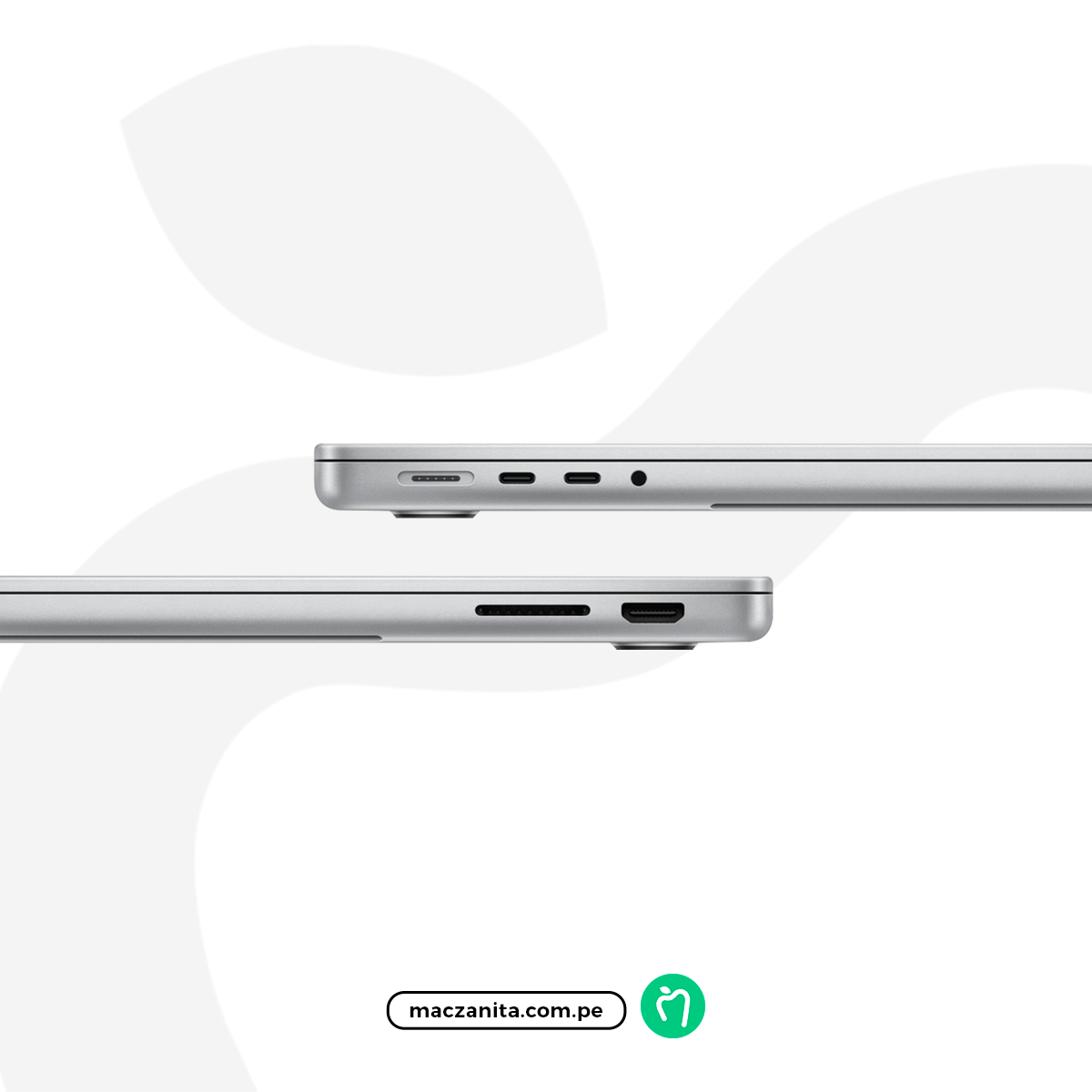 El MacBook Pro M3 14″ incluye una conectividad completa con Thunderbolt / USB-C, HDMI, ranura para tarjeta SD y MagSafe, permitiendo conectar monitores, accesorios y dispositivos profesionales sin adaptadores adicionales. Su batería de larga duración está optimizada para acompañarte durante toda la jornada laboral o académica con total confiabilidad. El MacBook Pro M3 14″ Plata | 8 GB RAM | 512 GB | Teclado Español es la opción ideal para quienes buscan potencia profesional, calidad visual superior y la confiabilidad del ecosistema Apple en un formato compacto y elegante. Mantente al tanto de la llegada y promociones de este increíble equipo siguiéndonos en Instagram @maczanita.peru y TikTok @maczanita.pe. Para consultas rápidas, visita nuestro Facebook Maczanita Perú o explora todos nuestros productos en www.maczanita.com.pe.