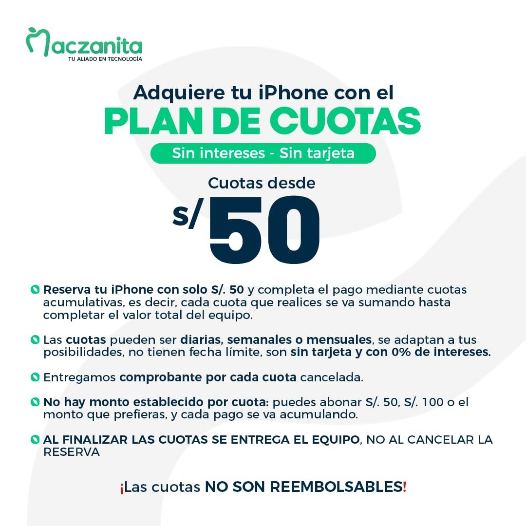 En Maczanita, te ofrecemos una forma fácil, segura y accesible de comprar iPhone, MacBook, iPad y otros dispositivos Apple mediante nuestro Plan de Cuotas Acumulativas, sin tarjeta de crédito y con 0% de intereses.
